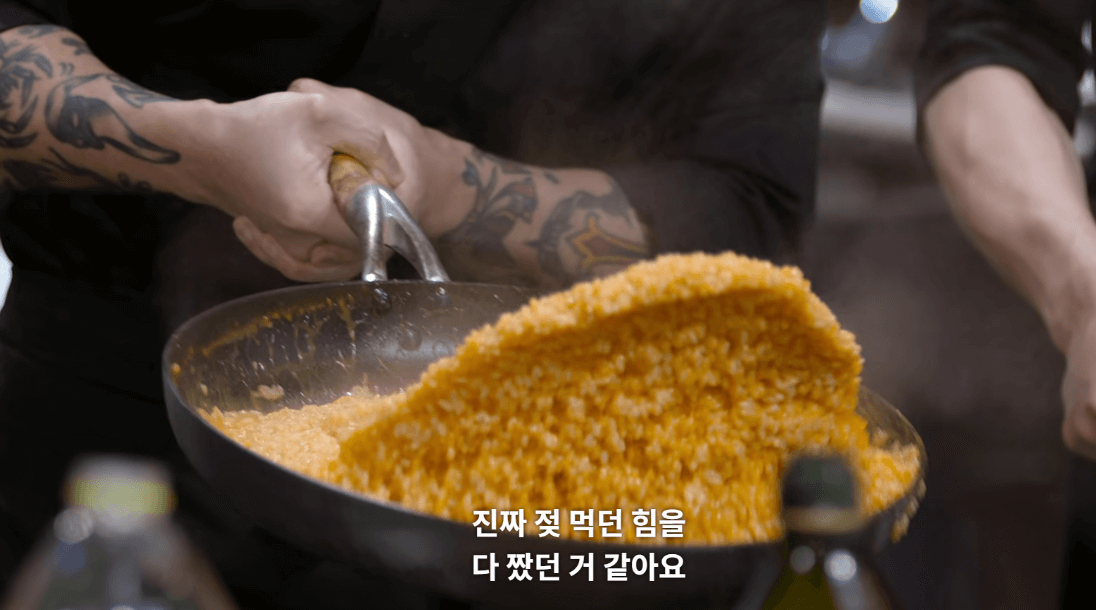 흑수저에서 첫 번째 생존자는 바로 이탈리아 맛피아입니다. 리소토 요리 시간에 대해 끝까지 좌불안석을 보인 요리하는 돌아이의 였지만 결국은 기가막힌 리조또 웍질(만테카레:유화반응을 통해 소스의 농도를 높여 소스가 쌀에 달라붙게 하는 것)로 인해 흑수팀의 요리가 살았습니다. 비록 알덴테에 대한 100인의 미스터리 평가의 호불호 인해 떨어졌지만 백종원과 안성재 심사위원의 입맛은 사로잡았습니다.